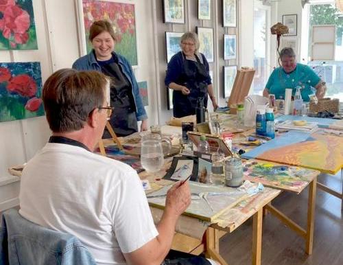 Das Atelierprogramm umfasst Malkurse für Erwachsene. Eine intensive und individuelle Begleitung in kleinen Gruppen ist mir besonders wichtig. So gibt es themenunabhängige Kurse und auch themenorientierte Workshops. In einer wunderschönen Atelieratmosphäre haben Sie die Möglichkeit die Zeit ein wenig zu vergessen. Entspanntes Arbeiten in einer entspannten Atmosphäre setzt Kreativität frei.