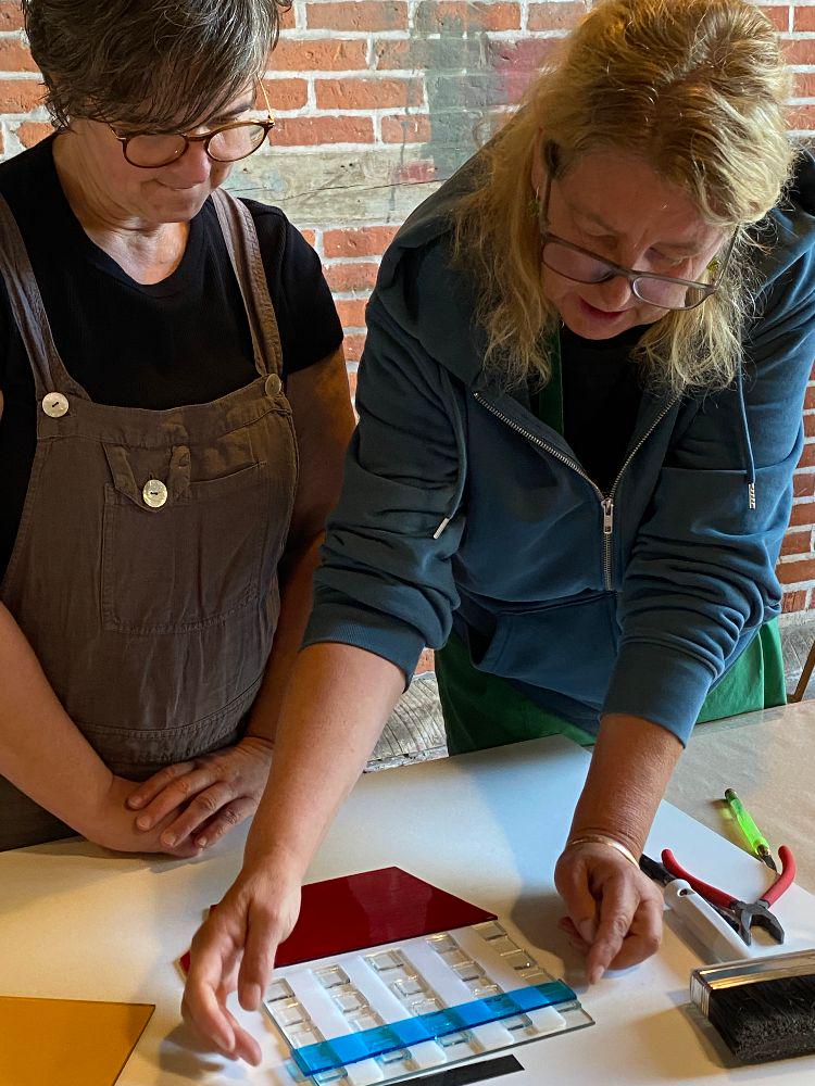 Nach dem Frühstück um 09:00 Uhr bauen wir bis mittags eine feuerfeste Form zum Senken des Glases. Dazu arbeiten wir mit Ton, Gips und Sand. Nachmittags werden wir noch weitere kleine Projekte in Glas machen wie z.B. Schmuckanhänger und wir erfahren mehr über Glas. Sybille zeigt uns abends ihre Arbeiten.