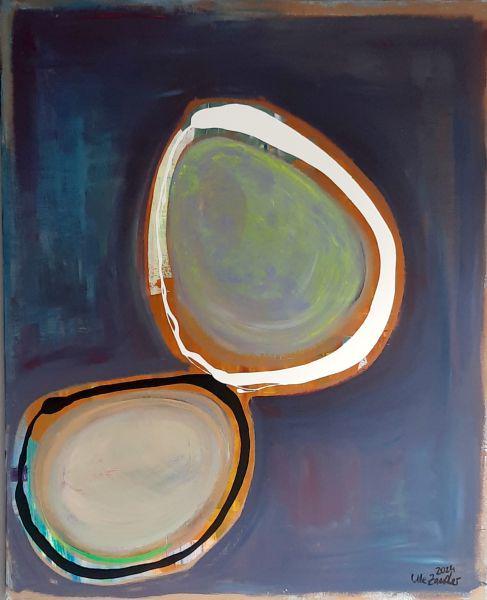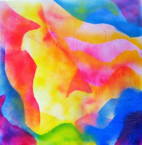 Es können sowohl gegenständlich reduzierte Bilder entstehen als auch informelle Arbeiten, bei denen Farben und Formen das Bild bestimmen.