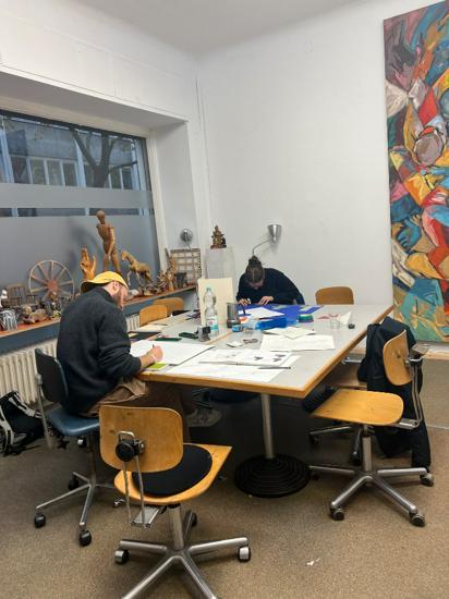 In unserem schönen Studio in der Dankelmannstraße 55 erwartet euch helles Licht, Ruhe und eine inspirierende Atmosphäre, die zum künstlerischen Arbeiten einlädt. Im Sommer kann auch im Garten gemalt und gezeichnet werden – ein Ort zum Entspannen, Entdecken und Gestalten. Fühlt euch bei uns herzlich willkommen.