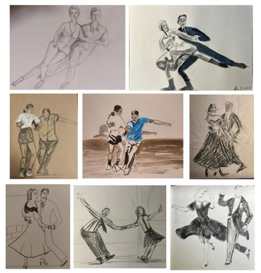 Im November / Dezember haben wir bei den Bunten Hunden ein paar Online-Sessions gemacht zu Tanz, daraus ist die Idee entstanden. Zeichnen von Tanz ist einerseits ein einfacher, niedrigschwelliger Zugang zur Figur. (Figur ist ja oft ein "Angstgegner"...) Es geht um Bewegung, um Beschwingtheit, nicht fest werden.