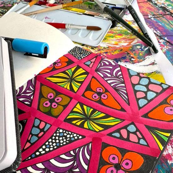 Wir stellen Dir Raum und Material zur Verfügung. Du kannst an Deinem Kreativ-Buch oder Skizzenbuch arbeiten, malen, zeichnen, collagieren oder schreiben. Lass uns verschiedene Materialien kreativ ausprobieren, miteinander kombinieren und gemeinsam Neues entdecken. Dein Kreativ-Buch hat keinen Anfang und kein Ende – es geht immer Schritt für Schritt weiter. Du kannst an alten Motiven weiterarbeiten oder das Buch als Inspirationsquelle für neue Bilder nutzen.