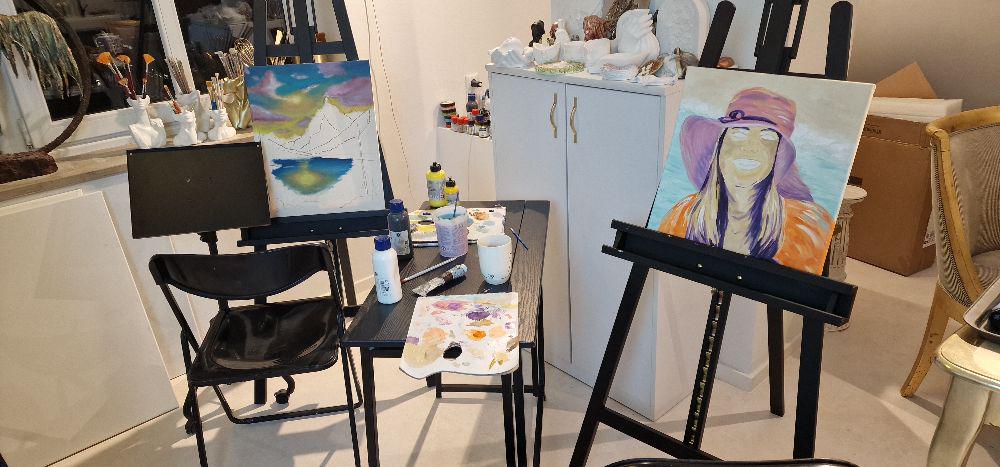 Lust auf eine kleine kreative Auszeit? 🎨 Sonntags öffne ich mein Atelier für begleitete Malrunden in kleiner, persönlicher Gruppe (2–4 Personen, in Ausnahmefällen etwas größer, da ein Nebenraum vorhanden ist). In ruhiger Atmosphäre arbeiten wir an deinem Wunschmotiv. Du bringst deine Leinwand und dein Motiv mit – Farben, Pinsel, Atelierzeit, Snacks & Getränke sind inklusive. Ich begleite dich individuell im Malprozess, egal ob du Anfänger:in oder fortgeschritten bist. Eine Leinwand kann bei Bedarf auch vor Ort erworben werden.