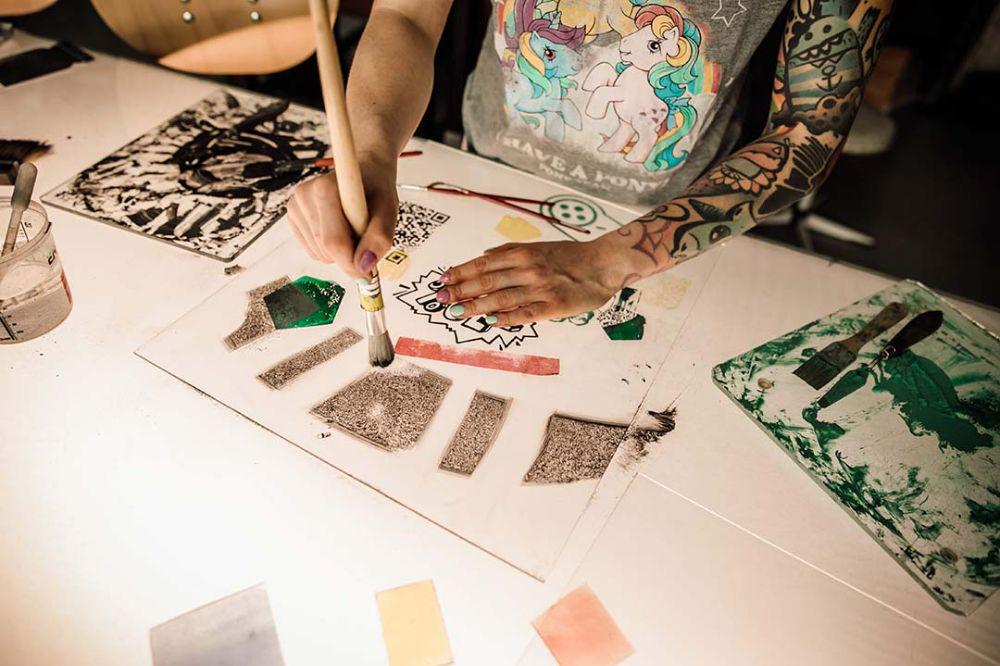 Bitte mitbringen: Skizzenbuch, farbiges Papier, Schere, Stifte, Marker sowie beliebige Fotografien, Grafiken oder Zeichnungen zur Inspiration. Falls vorhanden, können auch eigene Glasschneider oder Lieblingspinsel mitgebracht werden.