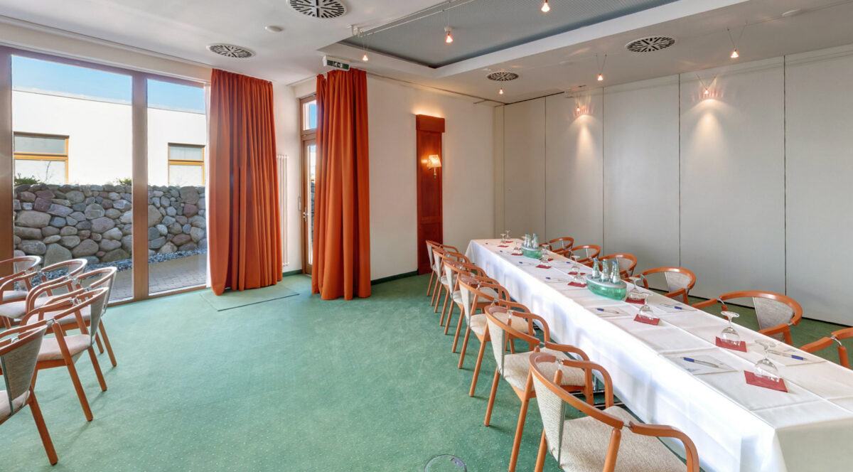 - Usedom III: Auf 45 m² ermöglicht dieser Raum konzentriertes Arbeiten in diskreter Atmosphäre mit Blick ins Grüne.