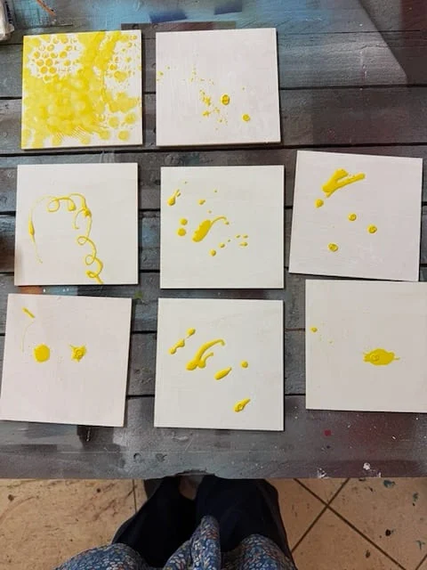 Seit einigen Monaten entstehen in meinem Atelier fast nur noch Minis, kleinformatige Arbeiten von 10 mal 10 und 15 mal 15 Zentimetern in Mischtechnik auf Holzträger. In diesem Beitrag zeige ich, wie die Minis entstehen, von der Vorbereitung bis zur Nachbereitung, und warum das kleine Format für meine Arbeit etwas anderes möglich macht als die große Leinwand.
